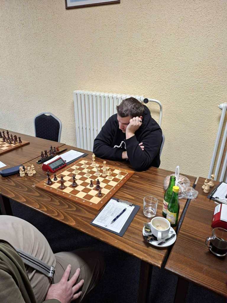 A to nejlepší na závěr, krásnou partii proti silnějšímu soupeři sehrál mladý bojovník Erik, soupeře strategicky přehrál a síly soupeře omezil natolik, že jej donutil se vzdát. Fantastický výkon i premiéra v družstvu. Zajímavostí dnešního zápasu je, že v pěti partiích z celkových osmi černí zvolili sicilskou obranu. Po osmém kole stále držíme první místo a jdeme do finiše, za 14 dní vyjíždíme do Rakovníku.